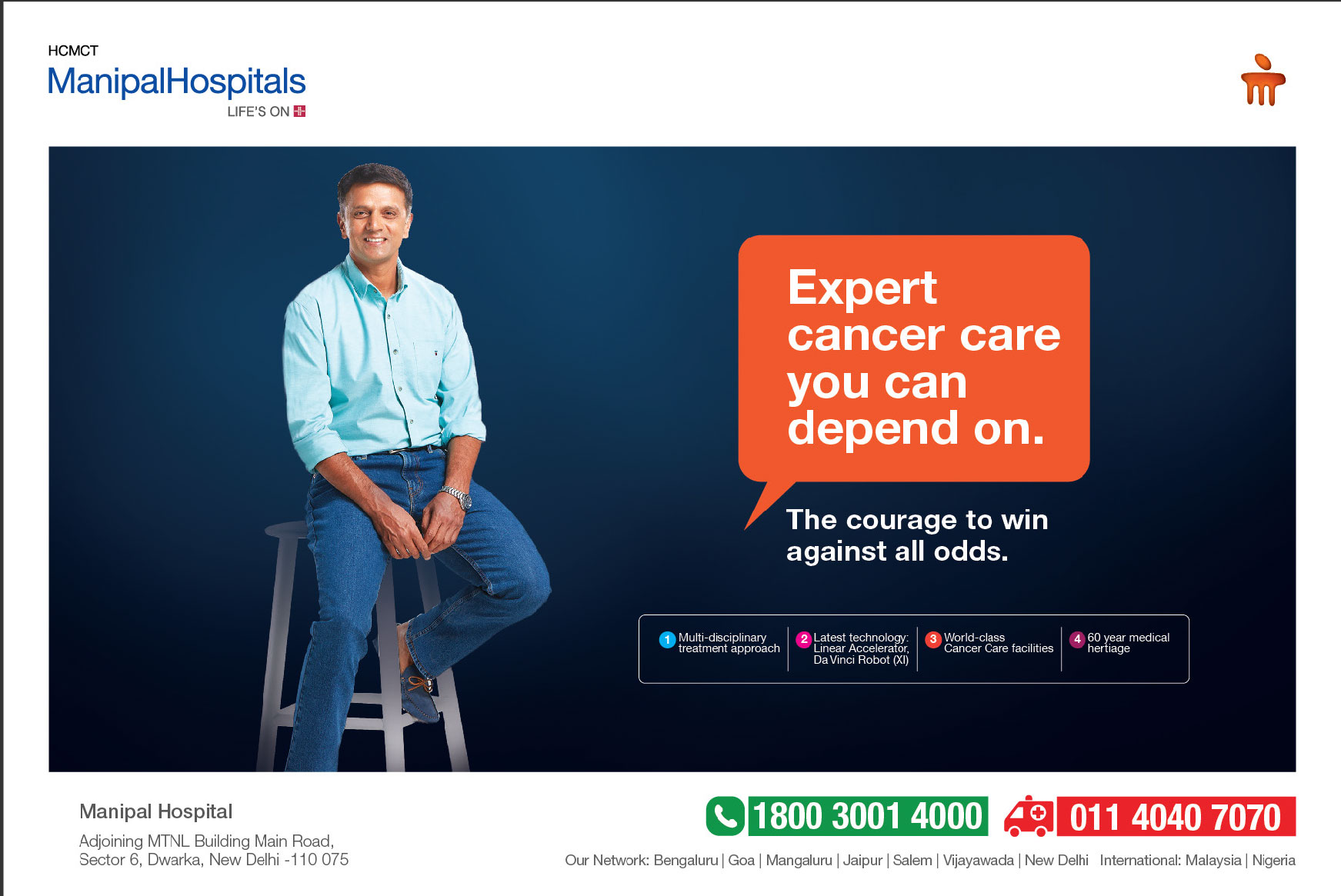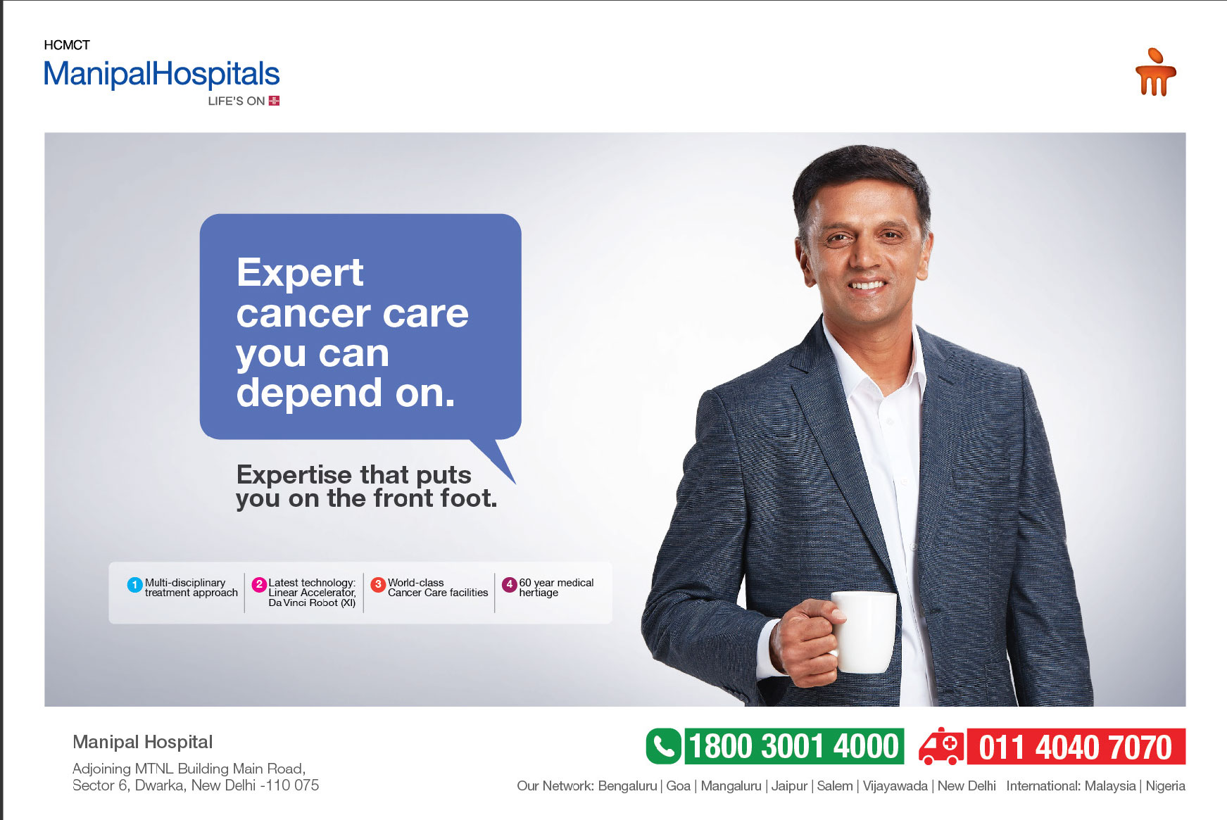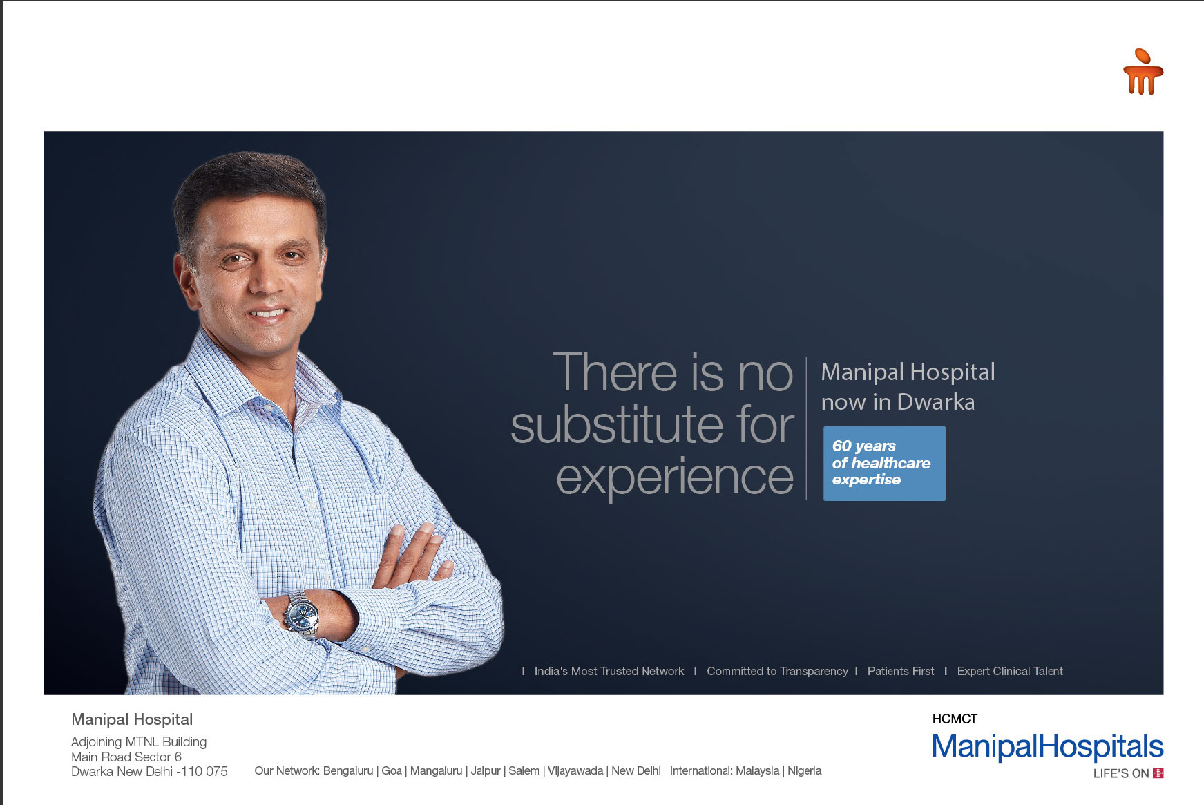 We used Rahul Dravid, a universally loved legendary Bangalore based south Indian cricketer as the perfect brand ambassador to launch Manipal's first hospital in the north, New Delhi. His squeaky clean image immediately struck a chord with the cricket crazy north Indian audiences for the south Indian, Bangalore based hospital chain.
